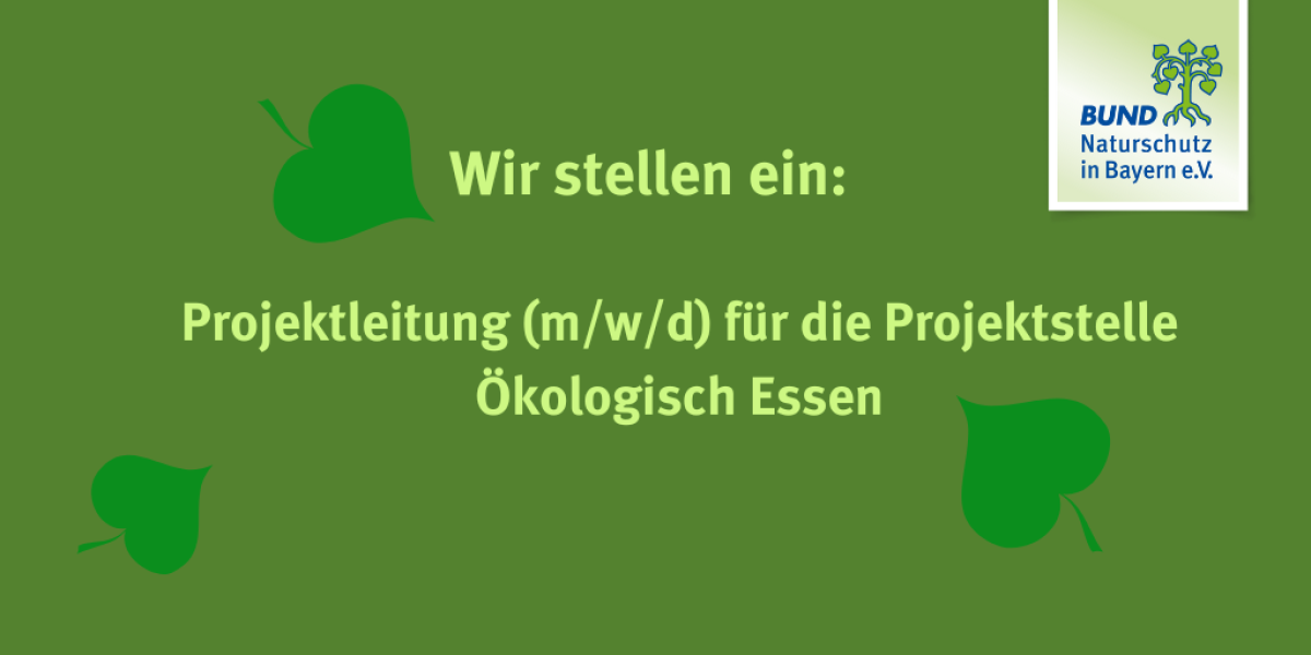 Die Kreisgruppe München des BUND Naturschutz in Bayern e.V. sucht zum nächstmöglichen Zeitpunkt eine Projektleitung (m/w/d) für die Projektstelle Ökologisch Essen. Die Stelle umfasst eine regelmäßige wöchentliche Arbeitszeit von 39 Stunden und ist auf zwei Jahre befristet.