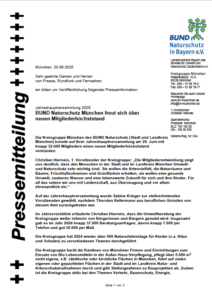 Die Kreisgruppe München des BUND Naturschutz (Stadt und Landkreis München) konnte auf ihrer Jahreshauptversammlung am 26. Juni mit knapp 32.000 Mitgliedern einen neuen Mitgliederhöchststand verkünden.